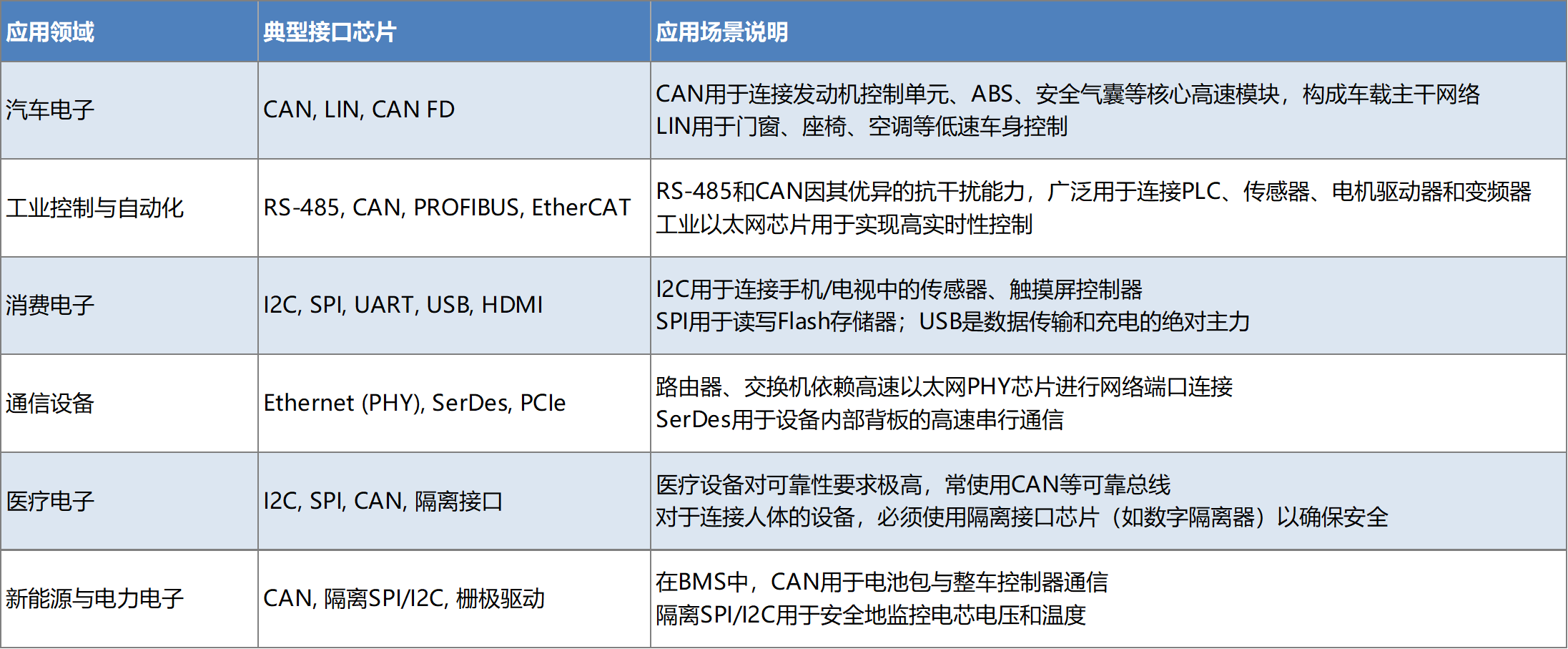 总体来看,通用接口芯片市场前景乐观,其增长由汽车电子、工业4.0、AI数据中心等核心趋势强力驱动。不同细分领域有各自的特点:消费电子市场基数大且稳定;汽车和工业市场要求高可靠性,是价值的体现;而AI数据中心相关的高速接口芯片则是增长最快的明星领域。