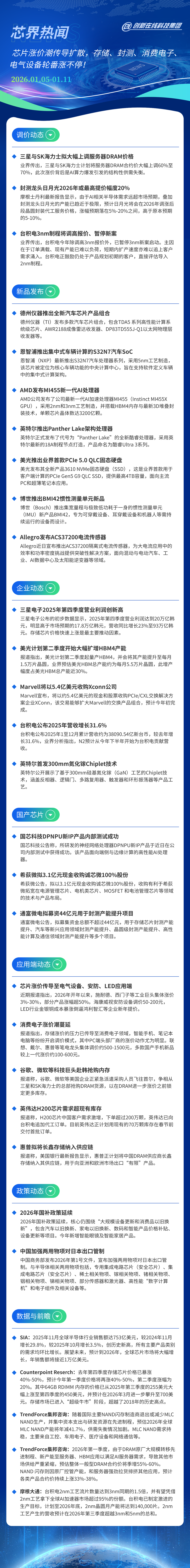 【芯界热闻26.01.05—01.11】存储、封测、消费电子、电气设备轮番涨不停!
