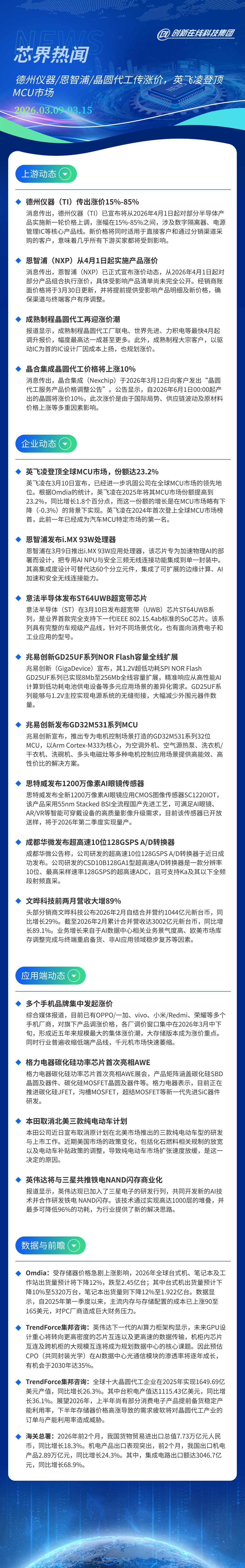 首页 > 【芯界热闻26.03.09-03.15】德州仪器/恩智浦/晶圆代工传涨价,英飞凌登顶MCU市场