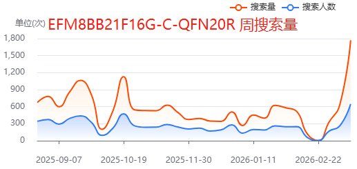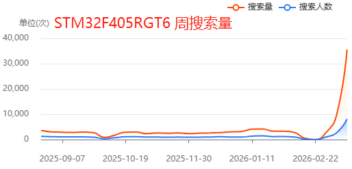 该型号平日就保有较高热度,最近更是搜索量大涨,甚至升至热搜头名,这显然与需求端因素紧密联系。且目前有消息称ST将8英寸晶圆产能优先分配给车规级MCU、SiC功率器件等高毛利业务,通用F1/F4系列产能大幅压缩,部分型号原厂暂停新订单。由此从供给端也造成了热度跃升的基本面。