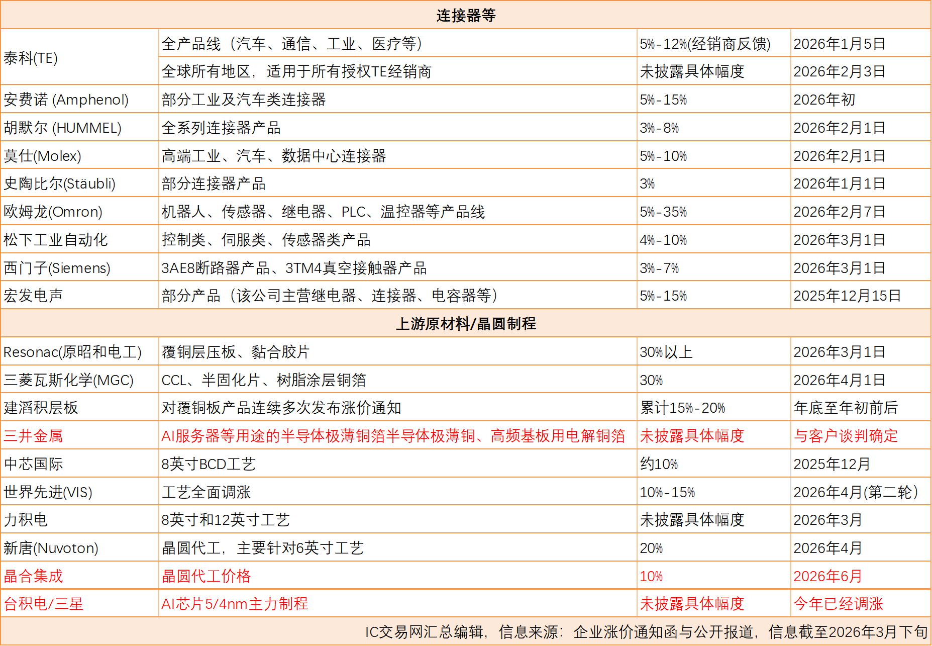 元器件“涨声”在整个3月持续。继TI、NXP、英飞凌等大厂涨价传出后,又有ST、安森美、MPS、村田等原厂迅速跟上。比起稍早时段,当前涨价动向又有增加,并扩展至更多领域,IC交易网也将最近新增的动态统计于下列表格中,以供参考。此外,最近行业还有诸多围绕产能布局的动态发生,也会深度作用于未来供应链格局之上。